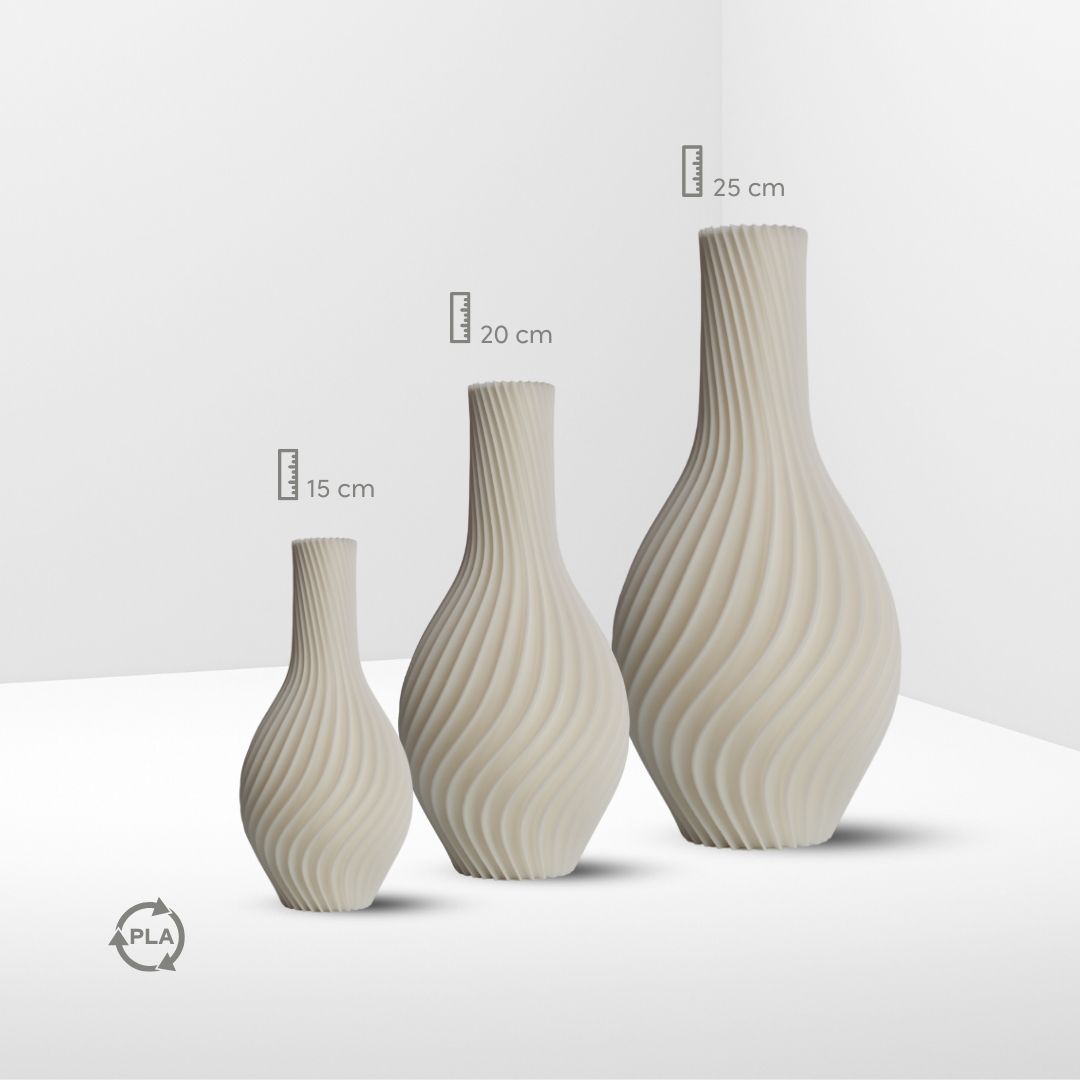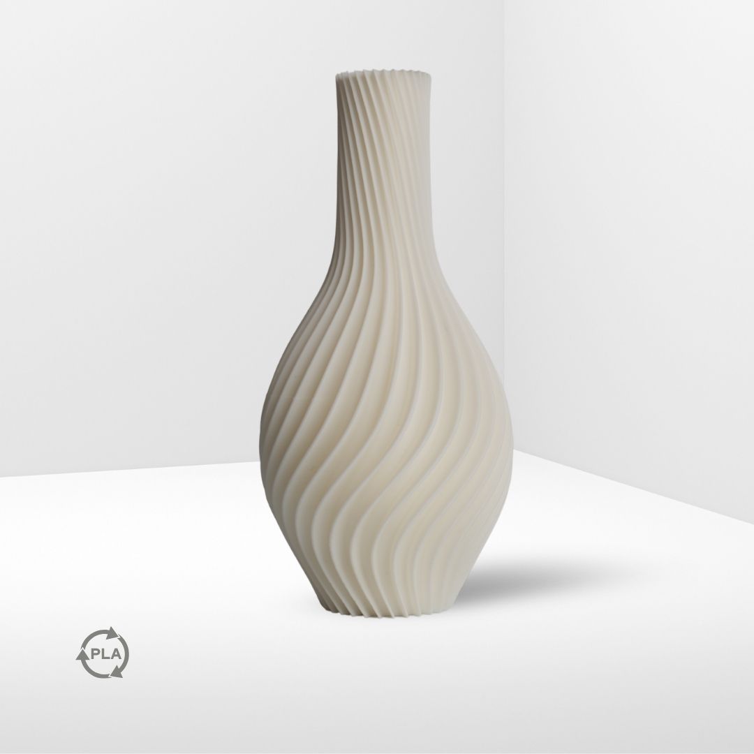 Cu o siluetă grațioasă și striații spiralate, Lyra este o piesă decorativă care captează privirea fără a domina spațiul. Formele fluide amintesc de curgerea lină a unui râu sau de urmele vântului în zăpadă proaspătă. Este creată pentru cei care caută rafinament discret și echilibru în designul interior.