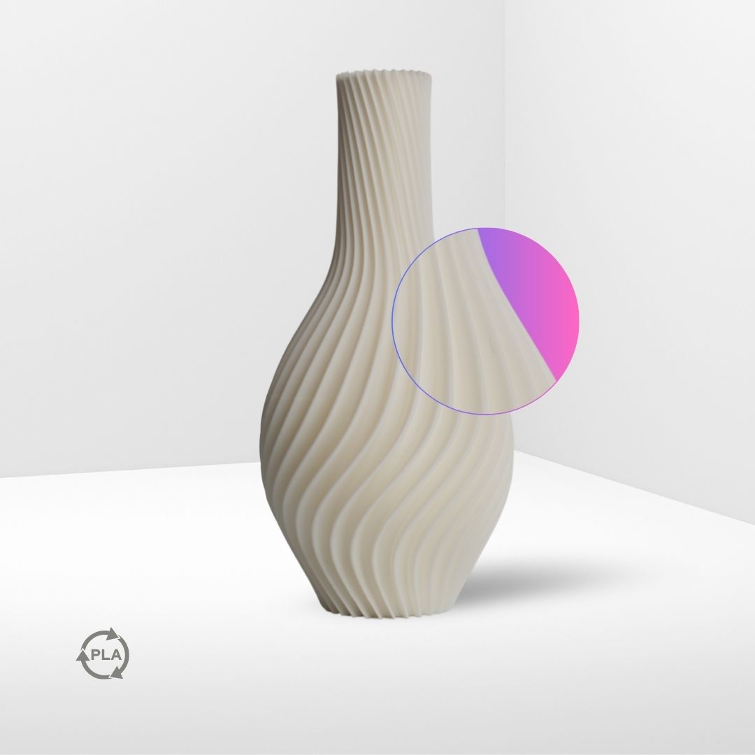 Lyra este realizată prin imprimare 3D din PLA ecologic, fiind disponibilă în 3 dimensiuni și mai multe nuanțe. Este un obiect sustenabil, versatil și ușor de integrat în decoruri neutre sau pastelate.